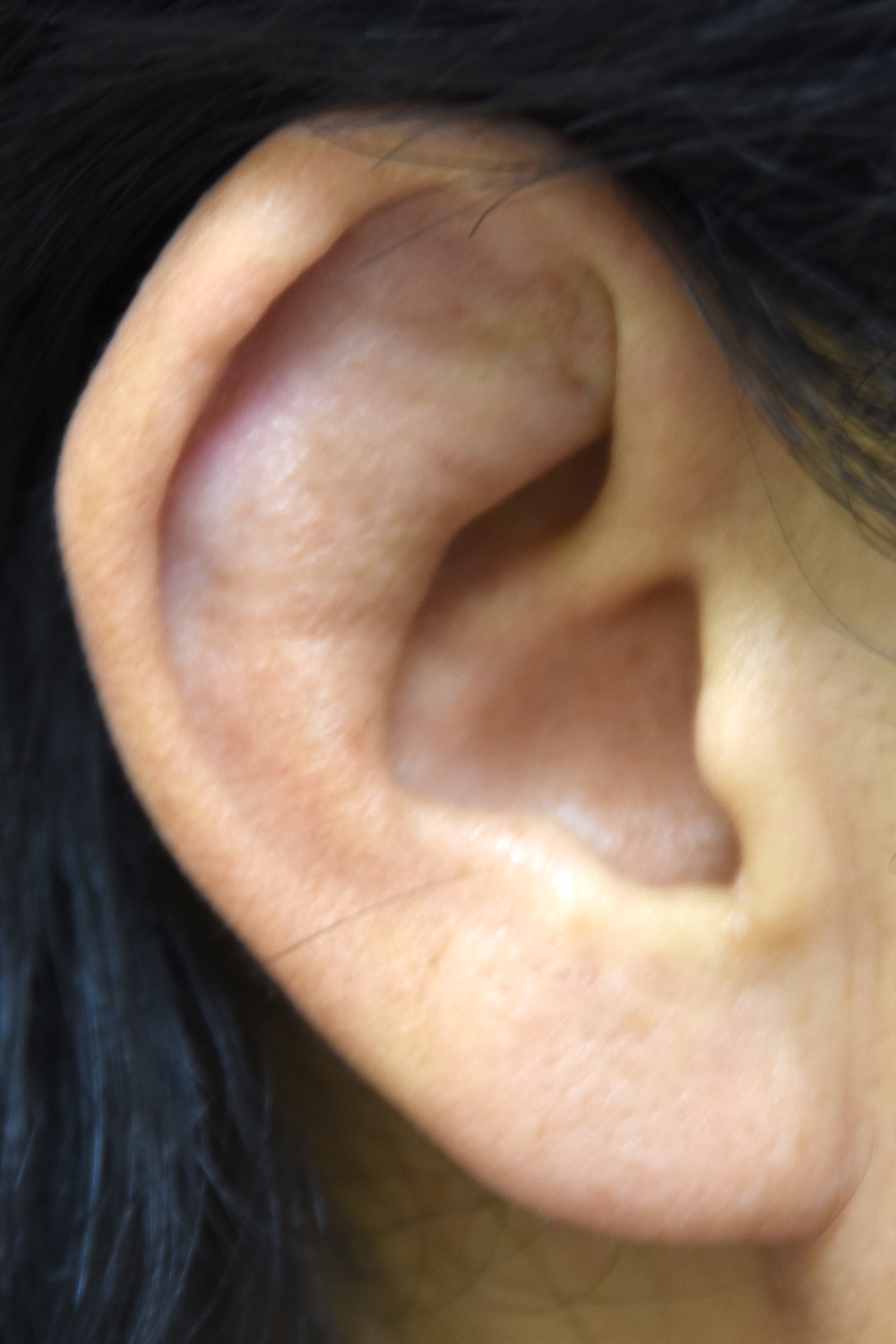 対耳輪ははっきり見えるようになりましたが、耳輪は凹凸なく正面から見てもなだらかです。