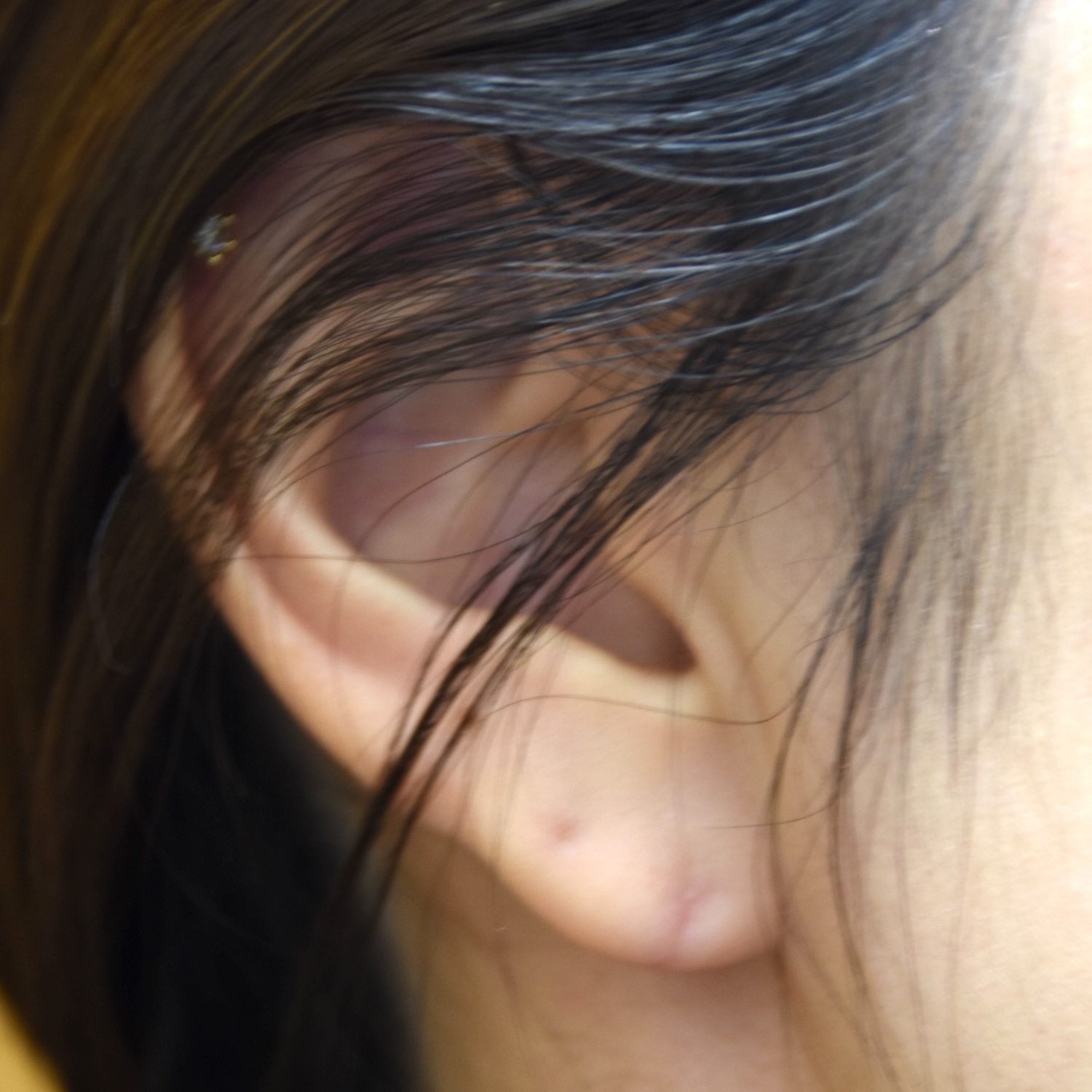 ピアストラブルが続くため、その度に少しずつ位置を変えて開け直し、またなるべく端に開けた方が化膿しないだろうと考えたそうです。
